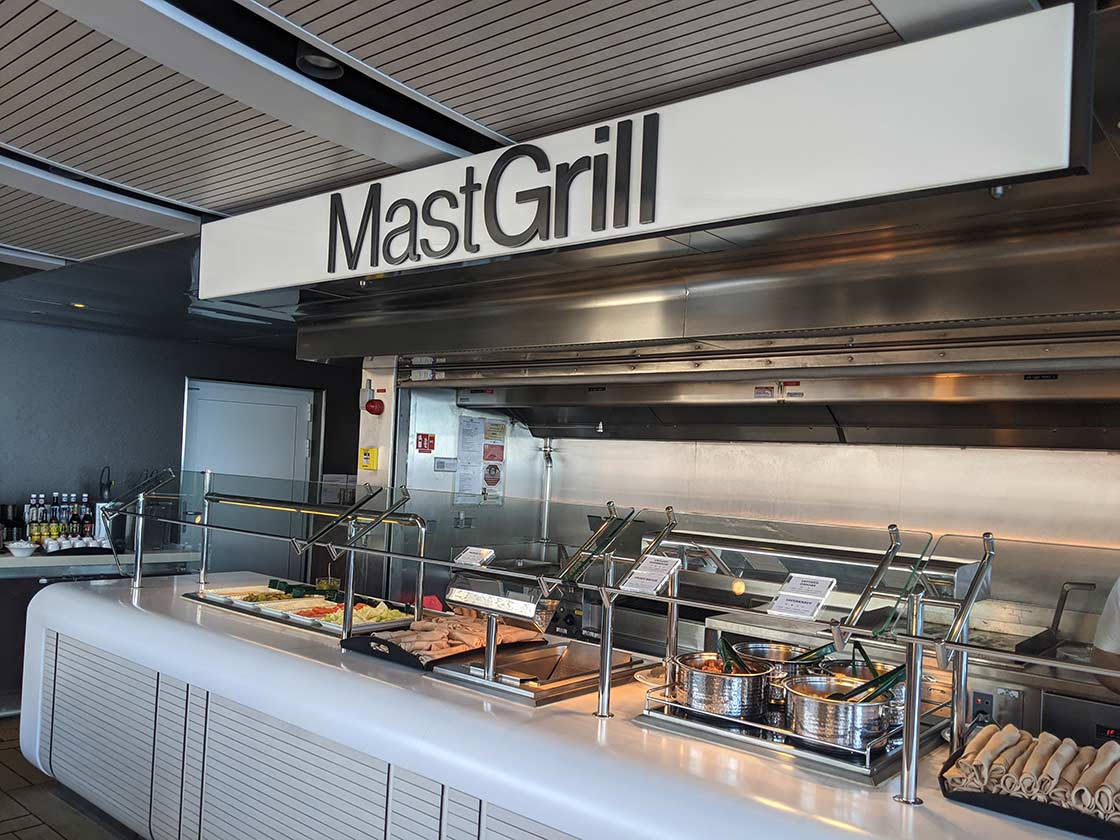 I really liked the choice of dining venues on board, there really was an option for everyone. A choice of four main dining rooms to choose from, as well as the Eden Café, Mast Grill or the Oceanview Café. The Oceanview Café, has waiters and waitresses bringing you drinks and food is plated for you at the stations.